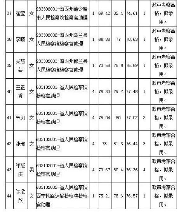 附:《2021年全省检察机关公开考录公务员和司法辅助人员政审合格名单》