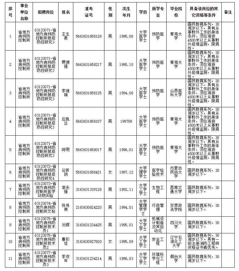 附表:青海省地方病预防控制所2021年公开招聘拟聘用人员名单